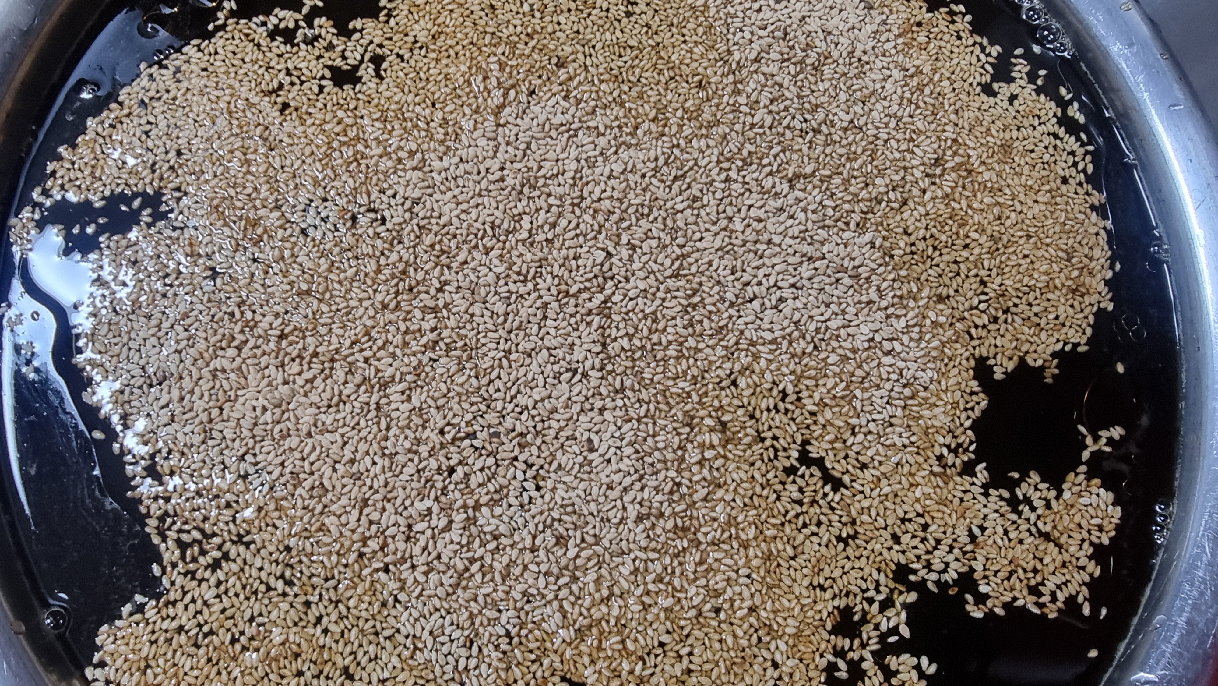 참기름 통깨를 넣고 통에 붓는다.
