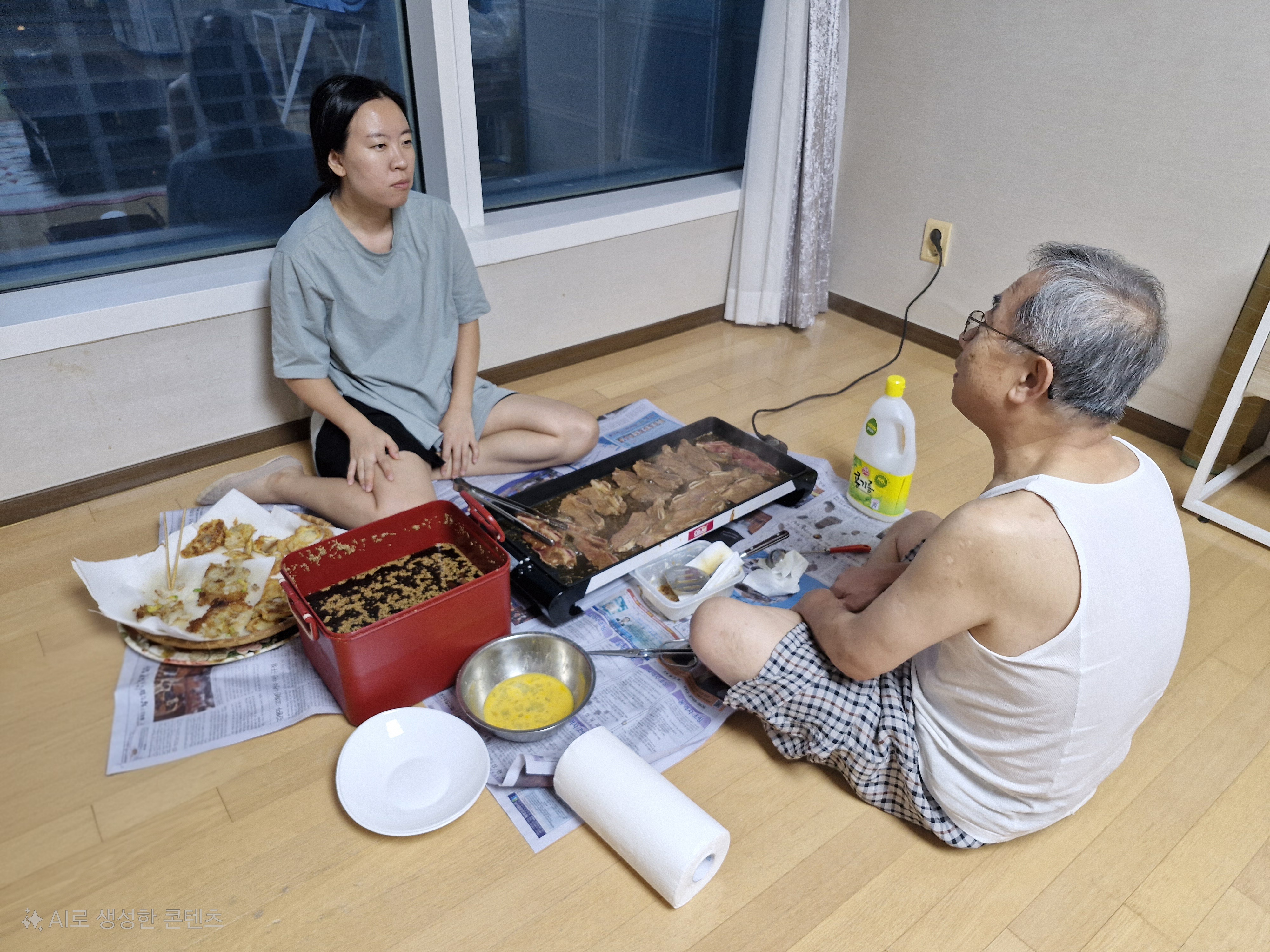 식기도 하고 한상에 둘러앉아 저녁을 먹는다.