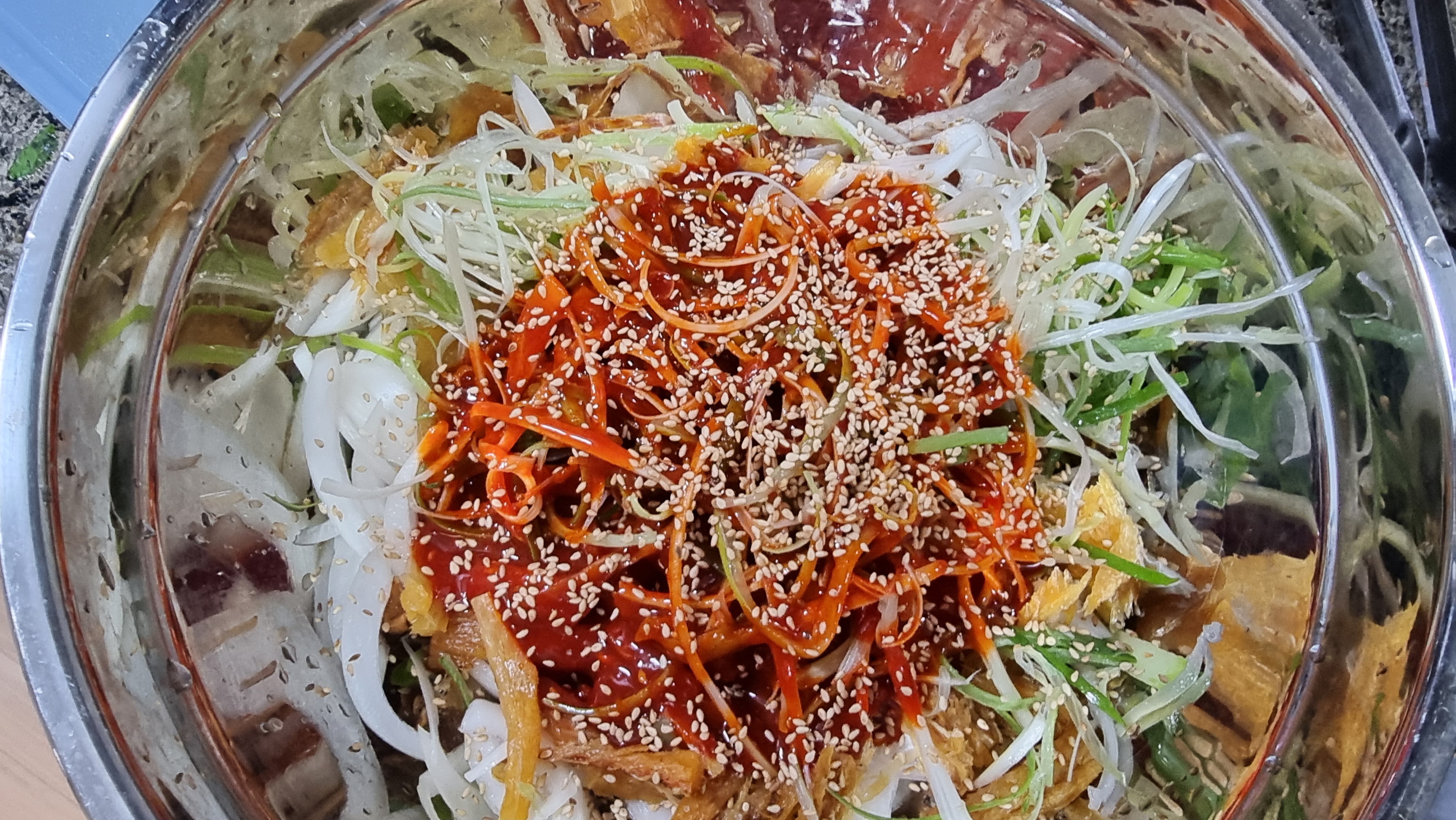 파채도 넣고 골뱅이 넣고 초장에 식초를