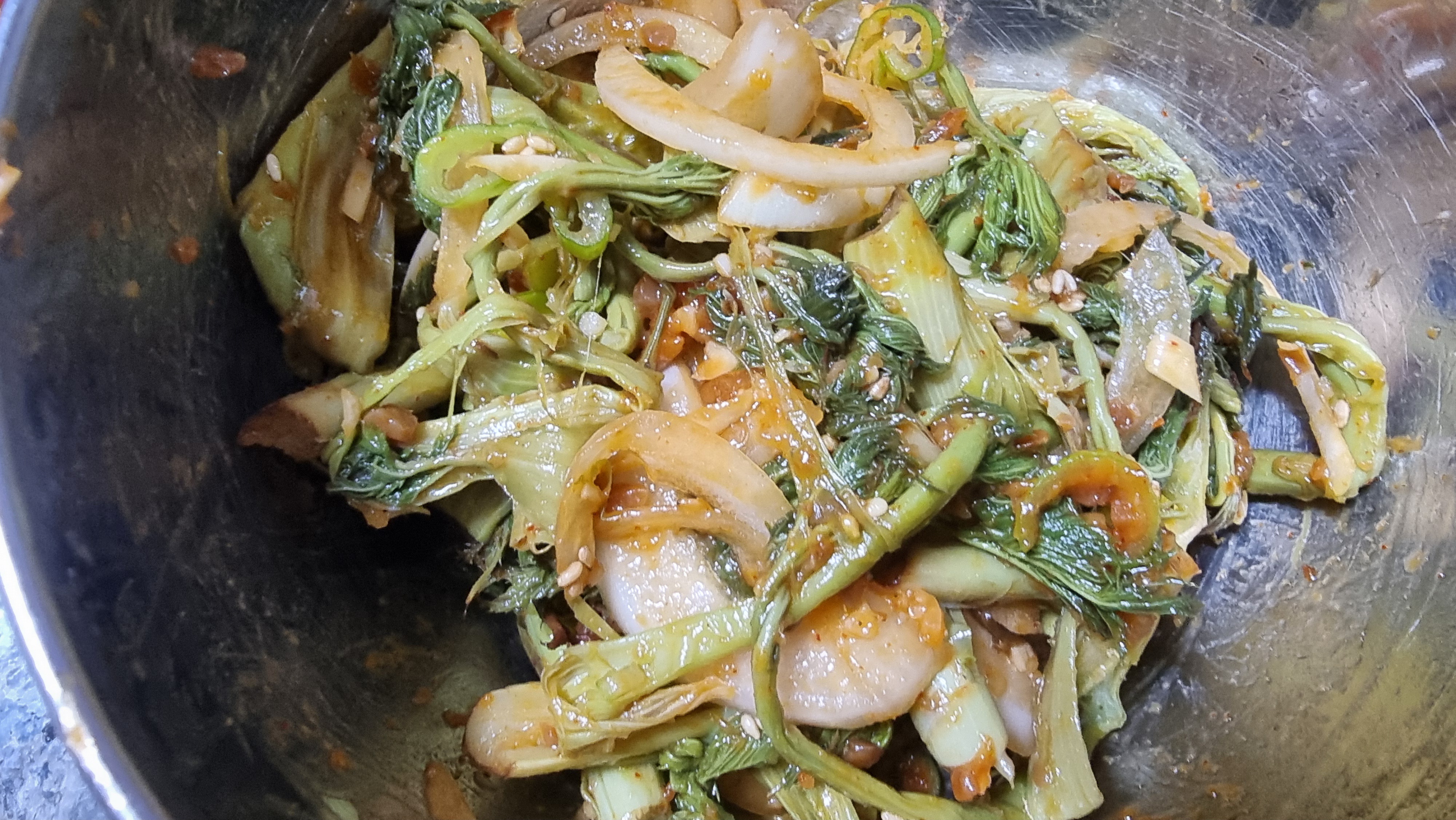 넣고 조물조물 무친후 참기름 깨소금 넣는다.