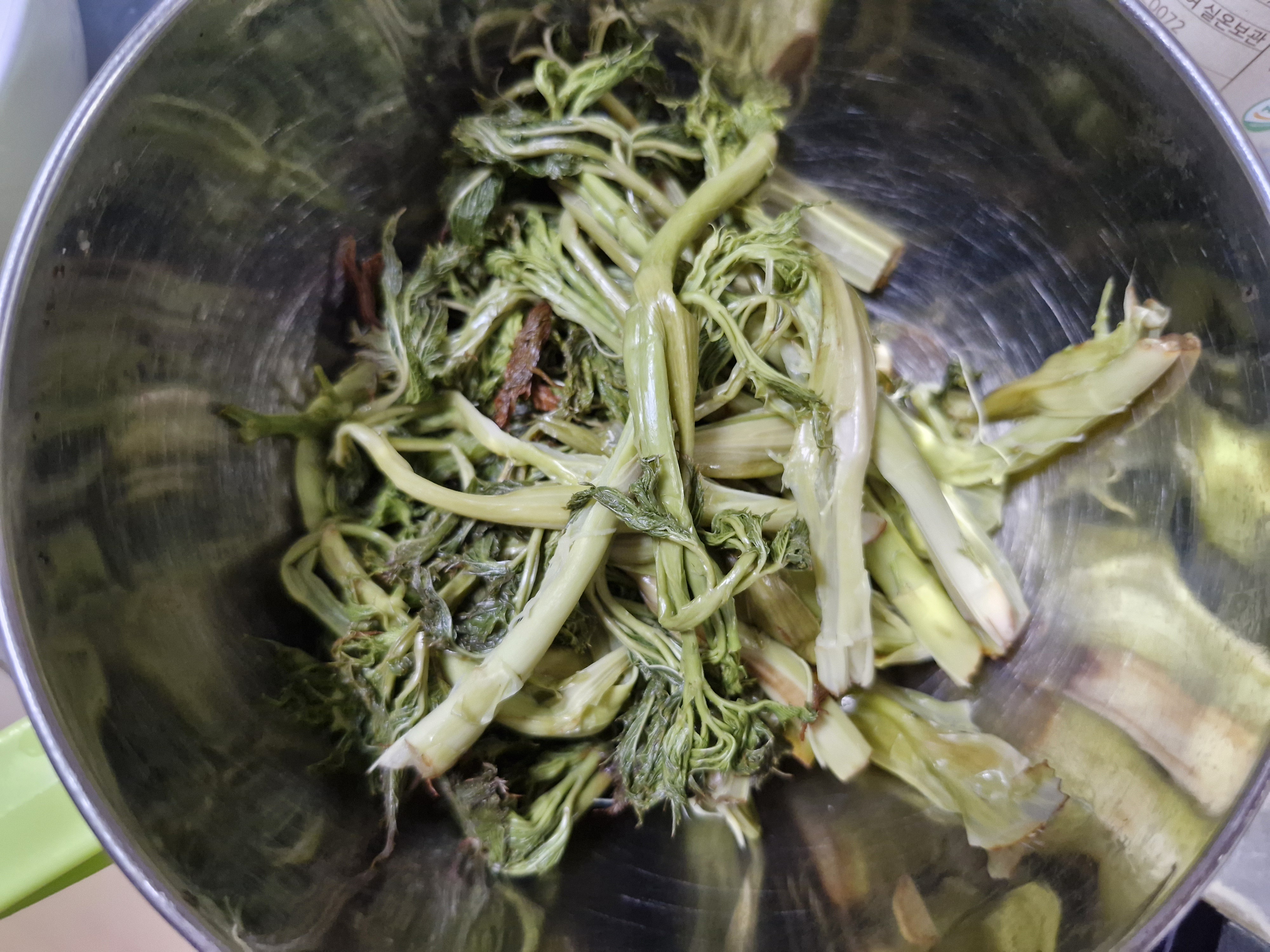 운동 가기전 냉동실에서 나물을 꺼내