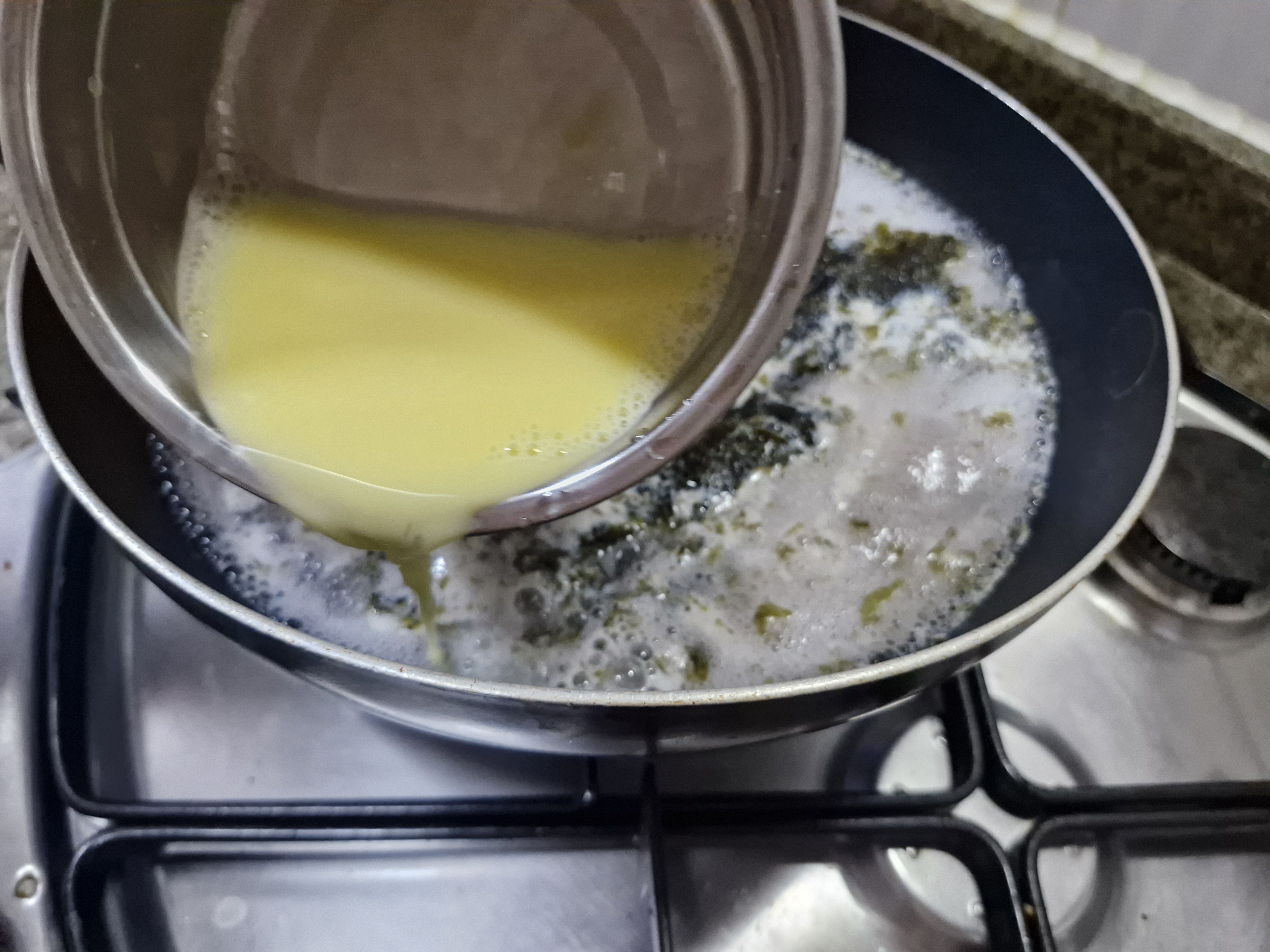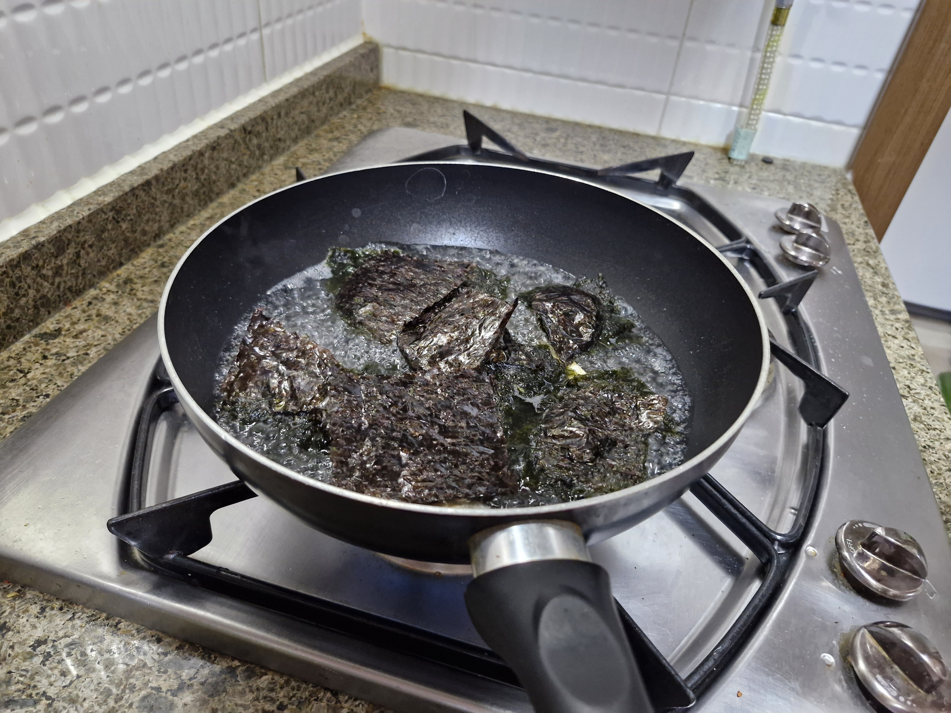 마지막, 불을, 끄고,참기름과 깨소금을 넣는다.