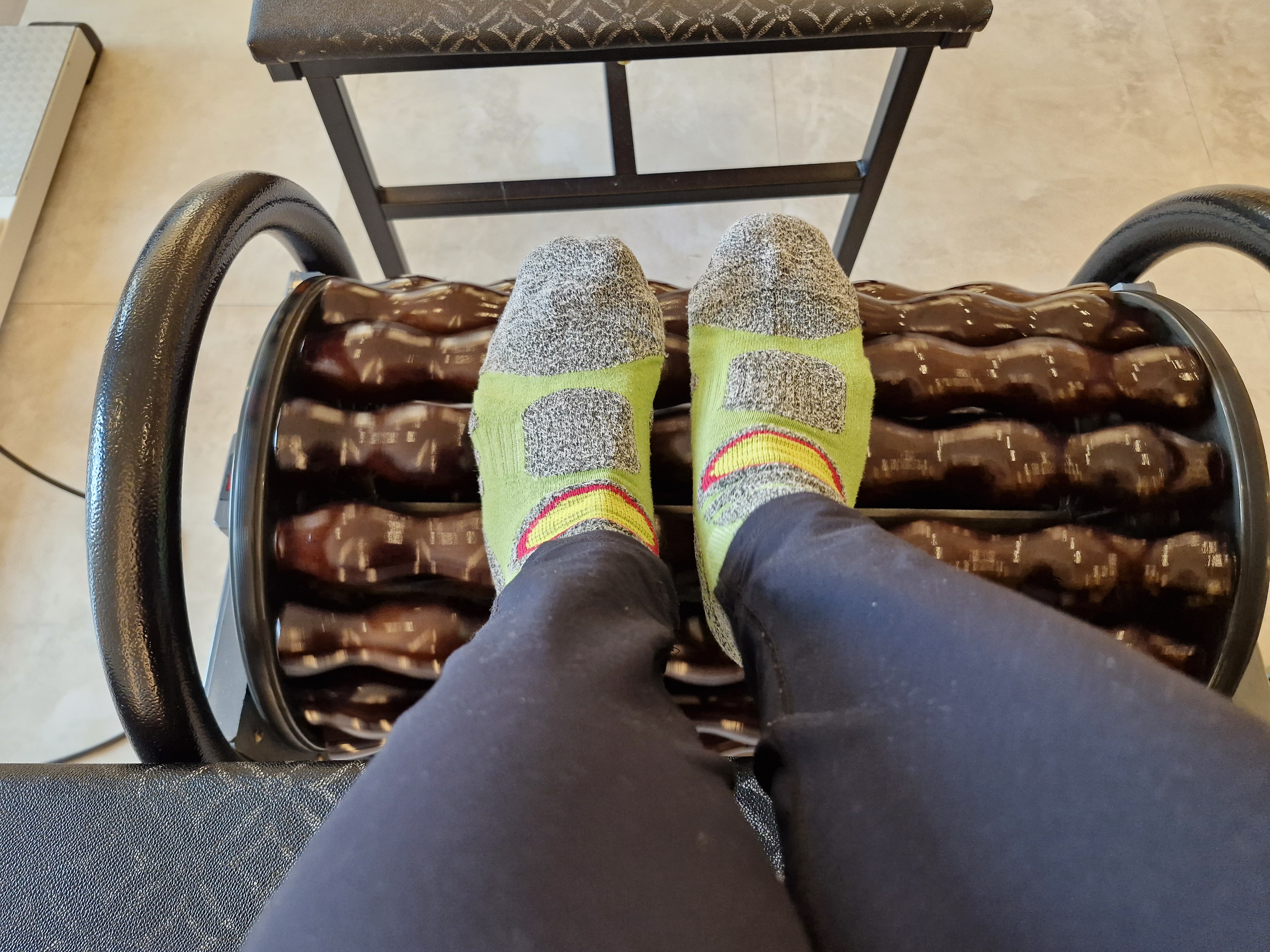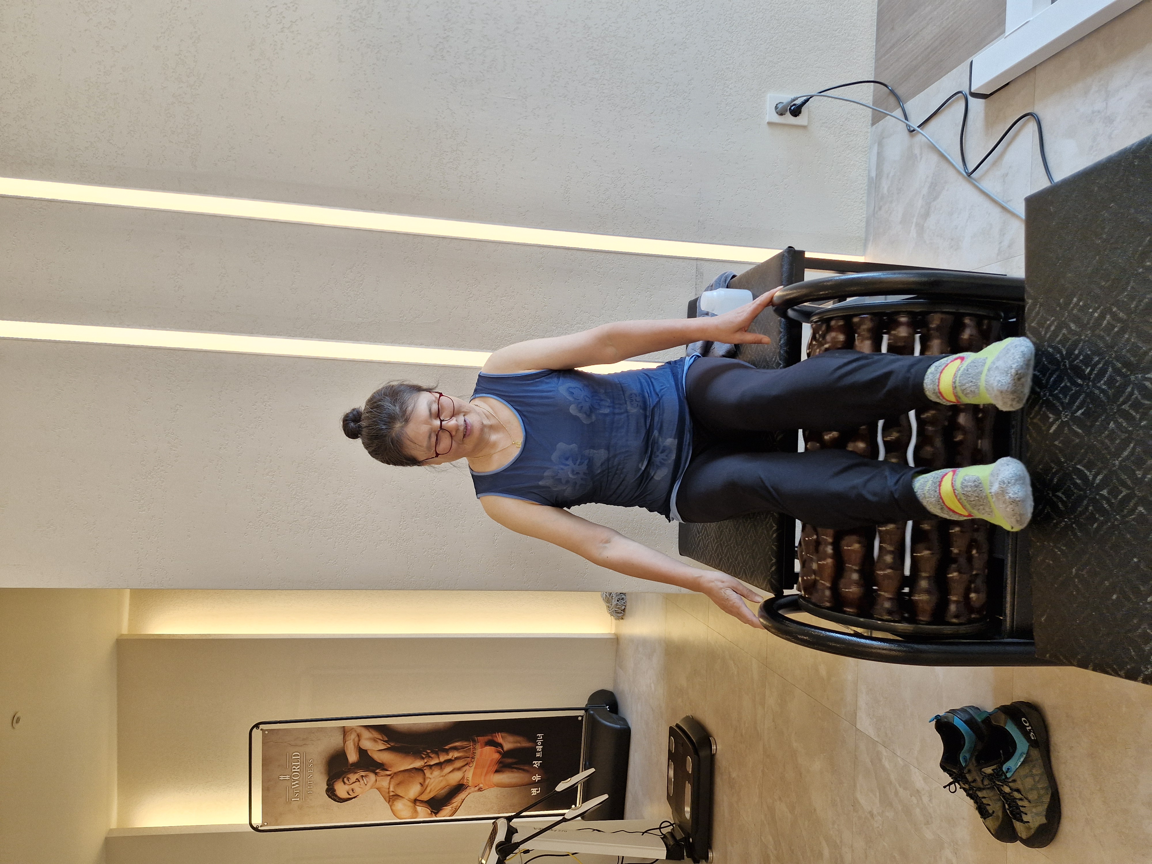 11~12개 기구로 운동 하고 예전 벼타작 하는 탈곡기와 비슷한 돌돌이로 마무리 하는데 너무 시원하다.