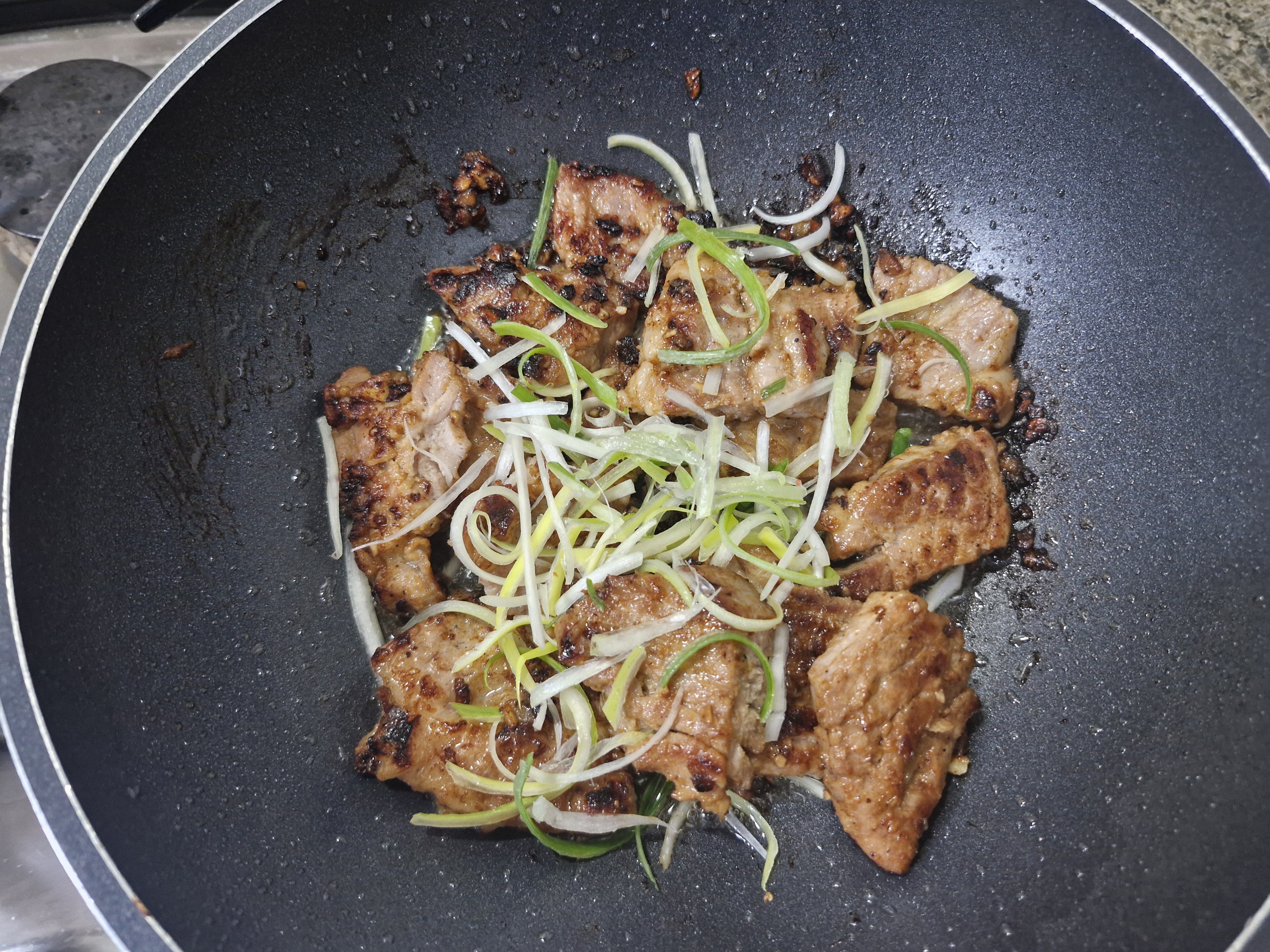 파채를 잘게 썰어서 위에 올리고 불을 끈다.