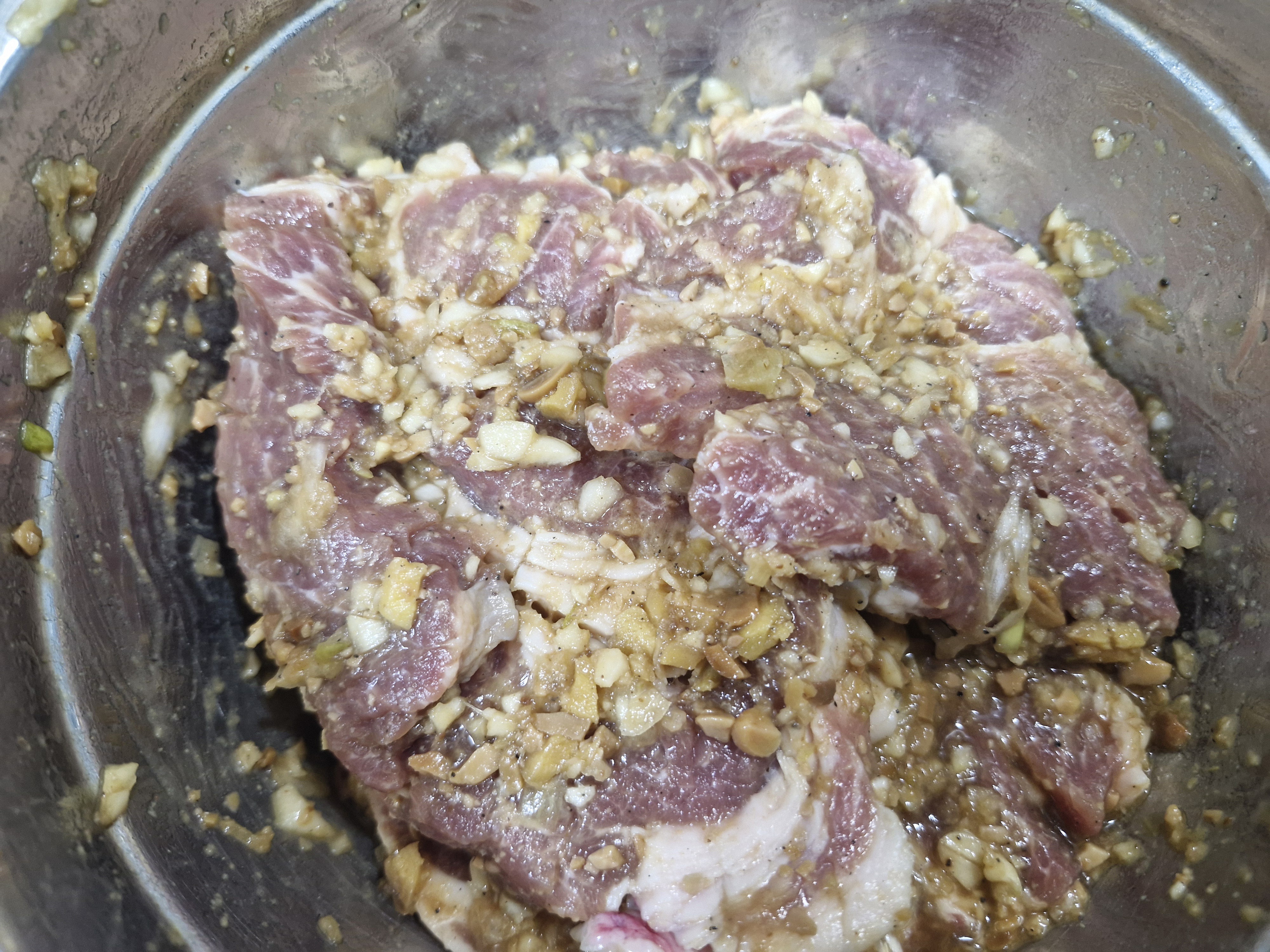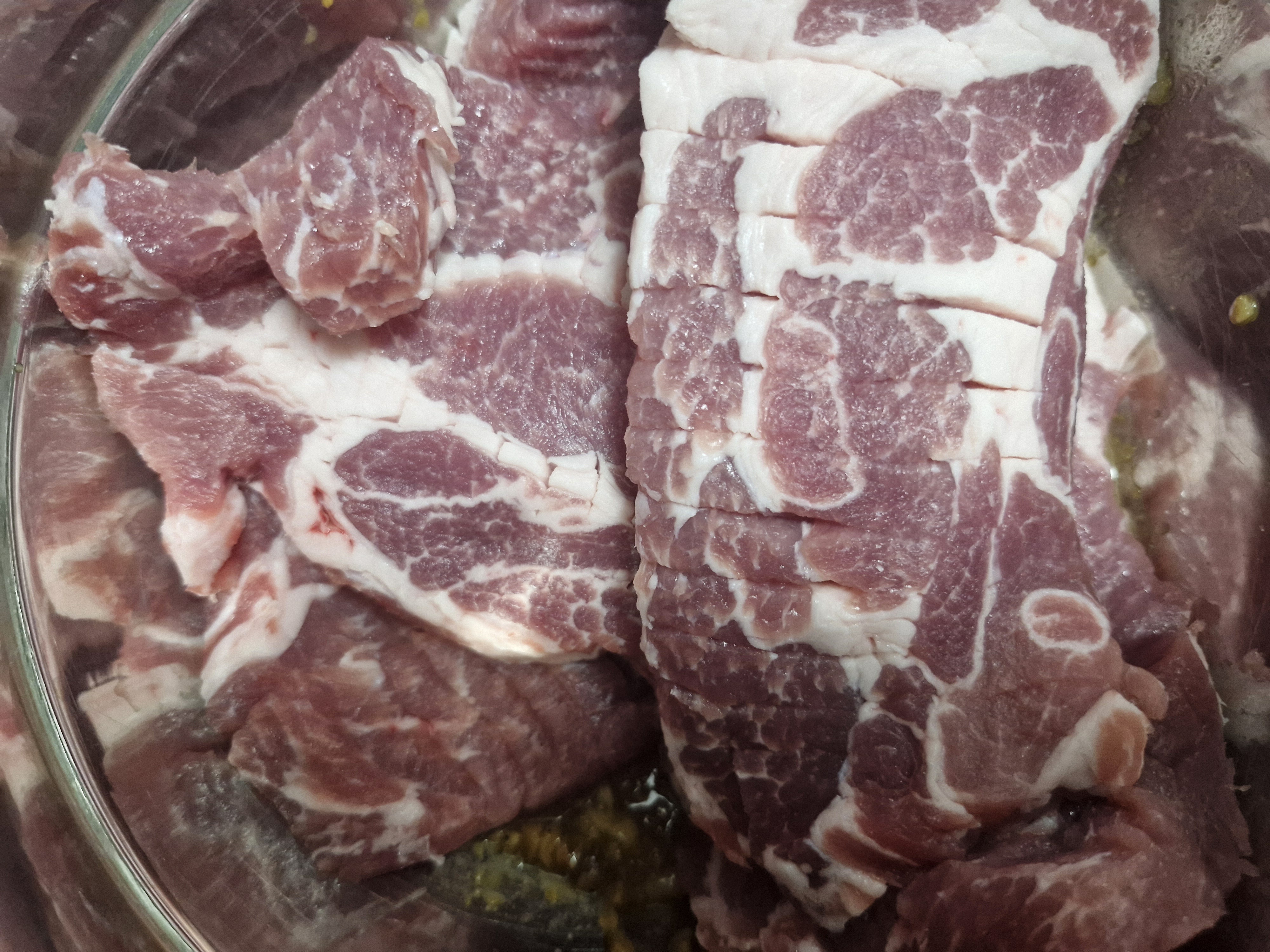 목살을 양념에 골고루 무친후 냉장고에