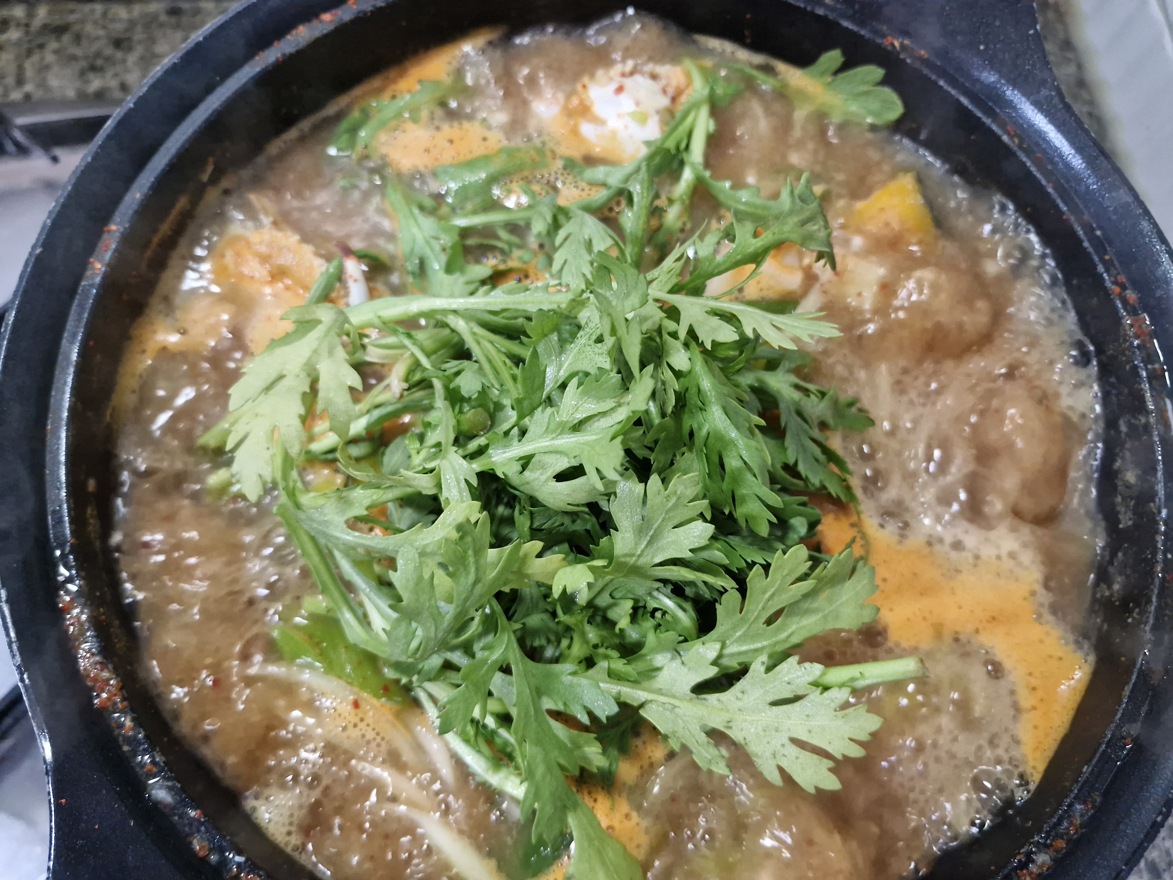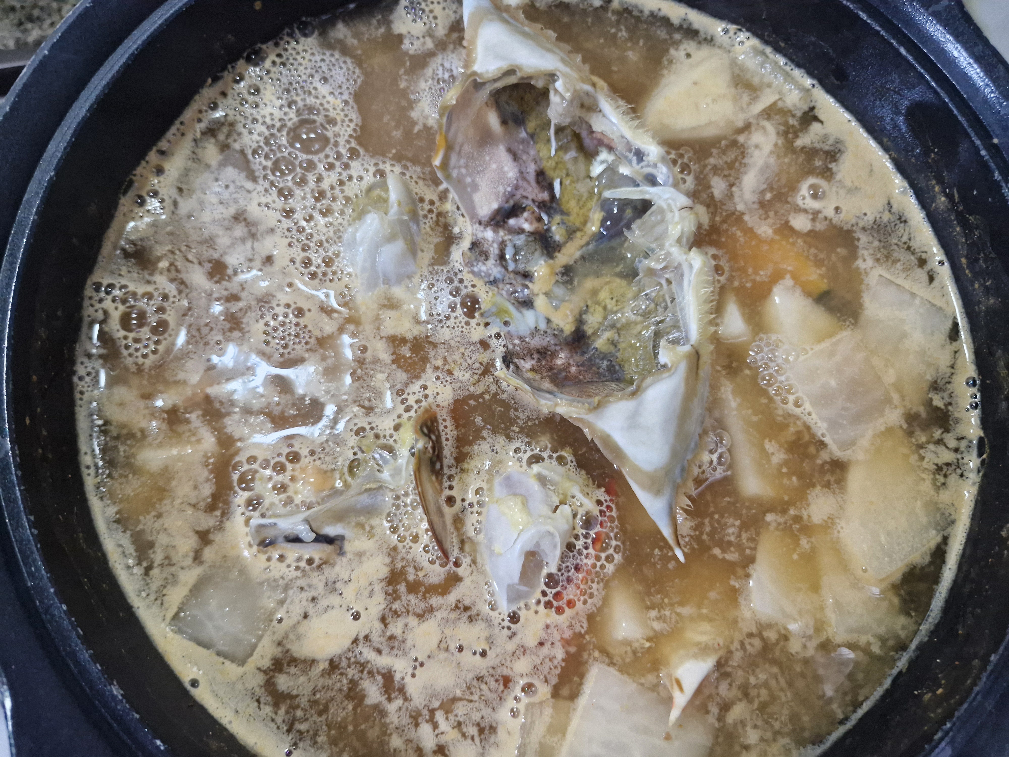 꽃게탕으로 간단하게 아침을 먹는다.
